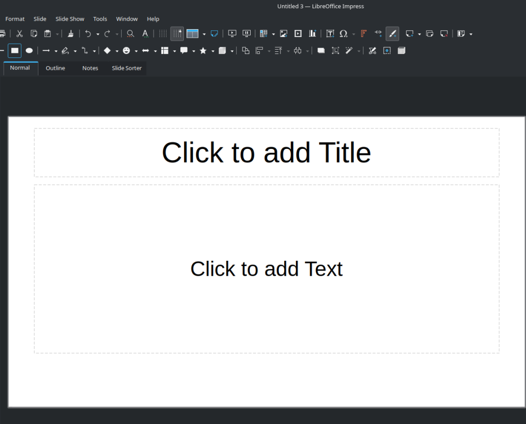 First, open up a LibreOffice Impress file. My preference is to start with a blank one that looks like this: