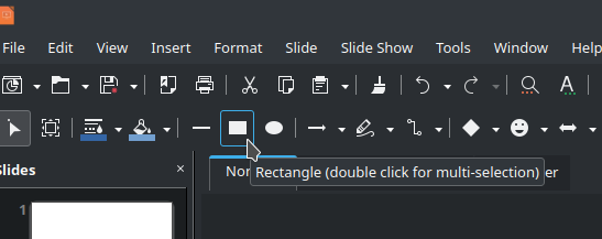 Go ahead and draw a Rectangle. Select the Rectangle icon in the toolbar: