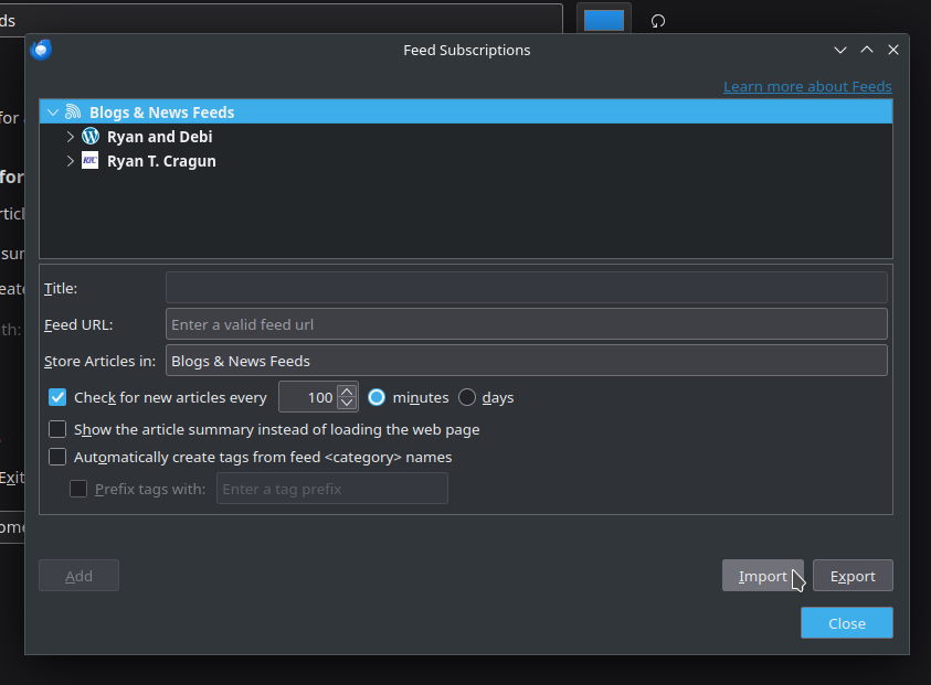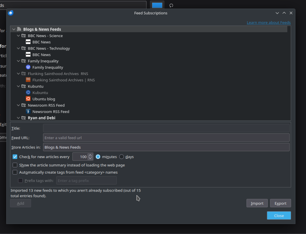 You can see at the bottom it caught the duplicates: “Imported 13 new feeds to which you aren’t already subscribed (out of 15 total entries found).”
